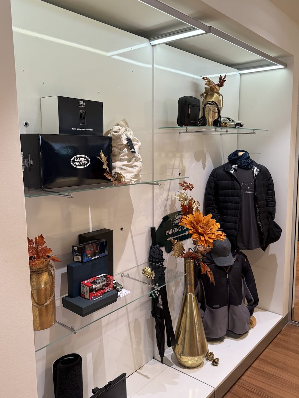 Wij etaleren uw accessoires in de vitrinekasten en wandpresentatie inclusief eventueel extra noodzakelijke decoratie geheel afgestemd op het seizoen en de uitstraling van uw showroom. De decoraties die ik inzet ter ondersteuning van de totaal presentatie ontvangt u in bruikleen. Denk hierbij aan seizoen accessoires zoals niet van echt te onderscheiden herfstbladeren of zomerse strand accessoires. U ziet deze details ook terug in de onderstaande foto presentatie. Ook het schoonmaken van de vitrinekasten vooraf is inclusief. U betaald hiervoor geen extra kosten.