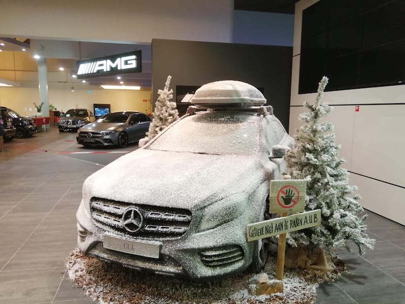 Tijdens de styling brengen we imitatiesneeuw, en decoraties aan op en rond de auto. We letten op detail, balans en sfeer om een aantrekkelijke winterpresentatie te creƫren die direct de aandacht trekt.